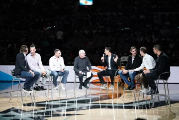 El reconocimiento a Manu Ginóbili también fue, de algún modo, un reconocimiento al básquetbol argentino. Con los muchos detalles que hicieron de esta una noche 100% albiceleste y convirtieron al AT&T Center en un rinconcito de la Argentina, la Generación Doradatambién fue parte. Porque fue una cuestión mutua: ese grupo aportó tanto para que Manu fuera Manu como el escolta aportó para que la Generación fuera dorada y no de otro color. Por eso los argentinos inflan el pecho y los estadounidenses aplauden cuando entran Gabriel Fernández, Andrés Nocioni, Pepe Sánchez, Alejandro Montecchia, Luis Scola, Pablo Prigioni y Fabricio Oberto y se sientan en el centro de la cancha. Con Adrián Paenza como moderador de la charla, los argentinos se dieron el gusto de hablar en español.