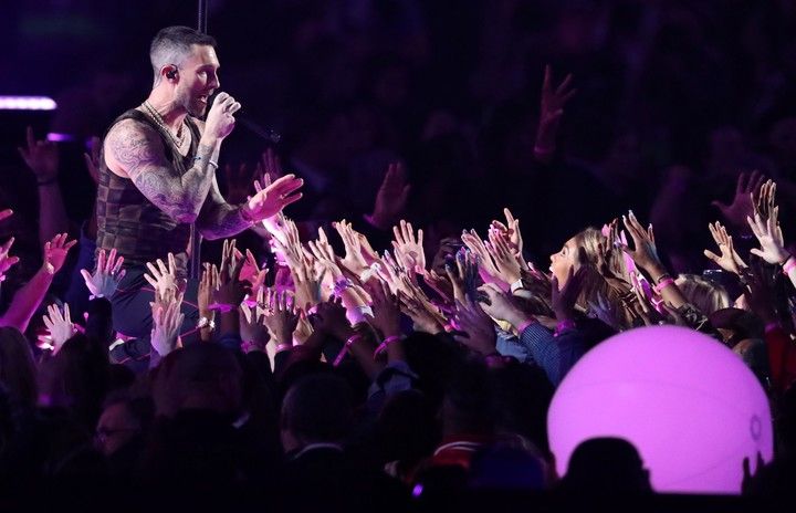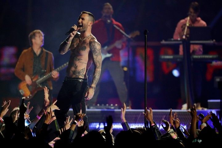En medio de ese escándalo todavía latente y del choque entre Los Patriots de Nueva Inglaterra y Los Rams de Los Ángeles, Adam Levine y su banda hicieron delirar a la multitud que llenó el estadio Mercedes Benz de Atlanta, la casa de los Falcons de esa ciudad.