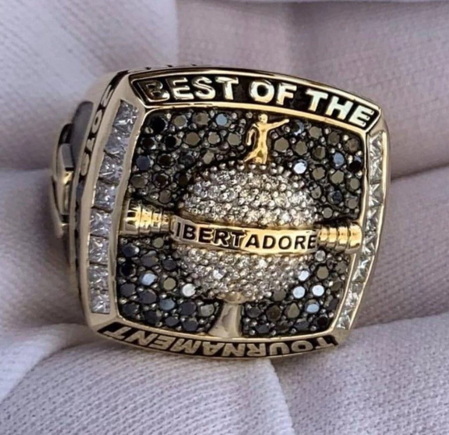 La particularidad del anillo es que dice: "Best of the tournament" (El mejor del torneo) pero en inglés, cuando la Libertadores la juegan solamente equipos de Sudamérica, donde se habla en español y portugués (Brasil).