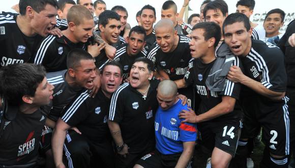 La tarea de Diego comenzó antenoche con una charla al plantel en la concentración, que se extendió hasta las 12 con anécdotas y consejos a los sorprendidos jugadores. Ayer, el astro llegó una hora antes del comienzo del partido en Villa Soldati y se ubicó, junto a su padre, y un grupo de acompañantes en un palco improvisado. Vivió el cotejo con el mismo énfasis que le pone todo a su vida. Gritó los goles a los saltos, pateó el alambrado, se quejó de algunos fallos arbitrales y explotó al final del cotejo. Y mientras ingresaba al campo de juego tras el 2-1, hasta se ufanó en el gol de Soto que él le había aconsejado pegarle en un tiro libre “al palo del arquero”.