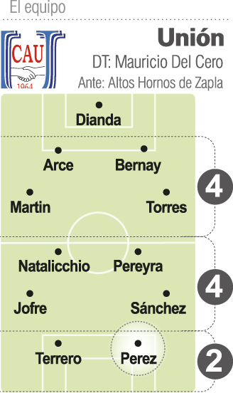 Tras confirmarse el desgarro en el abductor del goleador Gabriel Bibi González, en Atlético Unión el nombre elegido para reemplazarlo es el del jachallero Cristian Pérez en el trascendental partido de mañana ante Altos Hornos Zapla de Jujuy, válido por la última fecha de la Fase Campeonato del Federal A. Este sería el único cambio que el técnico Mauricio Del Cero dispondría pese a que ya está recuperado totalmente el volante Augusto Alvarez y practicó con normalidad junto al resto del plantel.