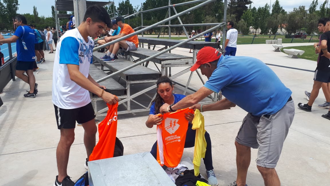 Daniel Bustamante se instaló a un costado de la flamante pista sintética desde el primer día de competencia, abrió sus bolsos y desplegó todos sus productos para ofrecerlos entre todos los competidores y también a los espectadores.