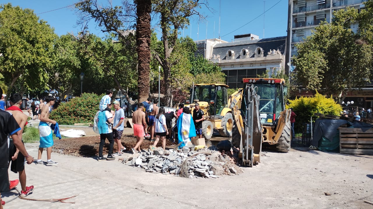 Y un tema que resultó peligroso fue que al ser muy endeble la tela perimetral de las obras de la Plaza 25 y ser tan grande la cantidad de gente, no pasaron ni 20 minutos de los festejos para que se metieran al interior, caminaran entre los escombros, baldosas flojas y se subieran hasta en las máquinas.