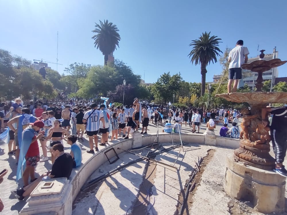 Dentro de ese sitio cada uno hizo lo que quiso, como por ejemplo subirse a la emblemática fuente de finales de 1800. En el perímetro hubo algunos desubicados que se subieron a los indicadores de las calles, carteles, semáforos y estatuas.