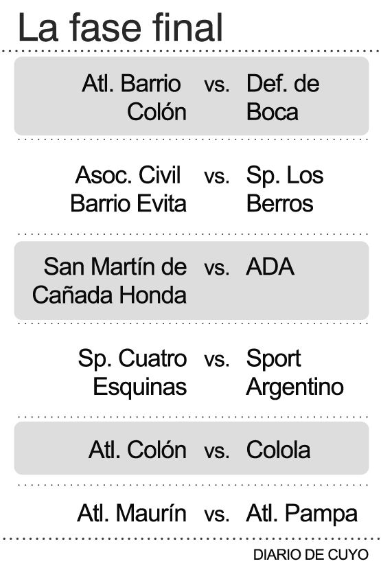La fiesta del interior sanjuanino empezó a subir exigencias. Pasaron ya los seis capítulos de la Fase Clasificatoria y de los 20 equipos que ingresaron a la edición 2017 de la Copa de Clubes Campeones, avanzaron a la Fase Final una docena de esperanzas que representan el orgullo de cada departamento. Solamente Calingasta se quedó sin ser parte de la fase decisiva tras la eliminación de Centro Calingasta, La Capilla y Consorcio pero se metieron departamentos como Iglesia, Valle Fértil, Sarmiento (2), Albardón (2), Caucete, Ullum y 25 de Mayo. El de mejor rendimiento de todos fue Defensores de Boca Juniors de Sarmiento que ganó los 6 partidos de su grupo y si avanzara a las etapas más cruciales, siempre tendrá el privilegio de definir todo en Los Berros por esa condición de líder de la tabla general. Más abajo aparecen Sportivo Los Berros y la ADA -actual subcampeón- que en sus zonas fueron los mejores y perdieron solamente un partido. El que atropelló de atrás fue Sport Argentino de Albardón que empezó a los tumbos pero terminó ganando su zona con holgura y está en el cuarto escalón de la general. Más abajo vienen los norteños de Sportivo Colola de Iglesia y Atlético Pampa de Jáchal que ofrecieron una lucha más que pareja en la zona que los reunió. Los cauceteros de Maurín y Atlético Colón entraron con lo justo y tendrán que remar bastante para seguir en carrera al igual que Sportivo 4 Esquinas de 25 de Mayo y San Martín de Cañada Honda, uno de los debutantes que llegó sorpresivamente lejos. Los otros dos que completan la docena de clasificados son los también debutantes Barrio Evita de Valle Fértil y Barrio Colón de Ullum.