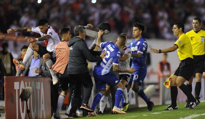Al final, con justicia, el árbitro paraguayo Mario Díaz de Vivar les mostró la roja a los dos. A Pérez, que estaba refugiado en el banco de suplentes. Y a Centurión, que no tuvo mejor idea que dejar el Monumental haciendo un gesto súper provocador.