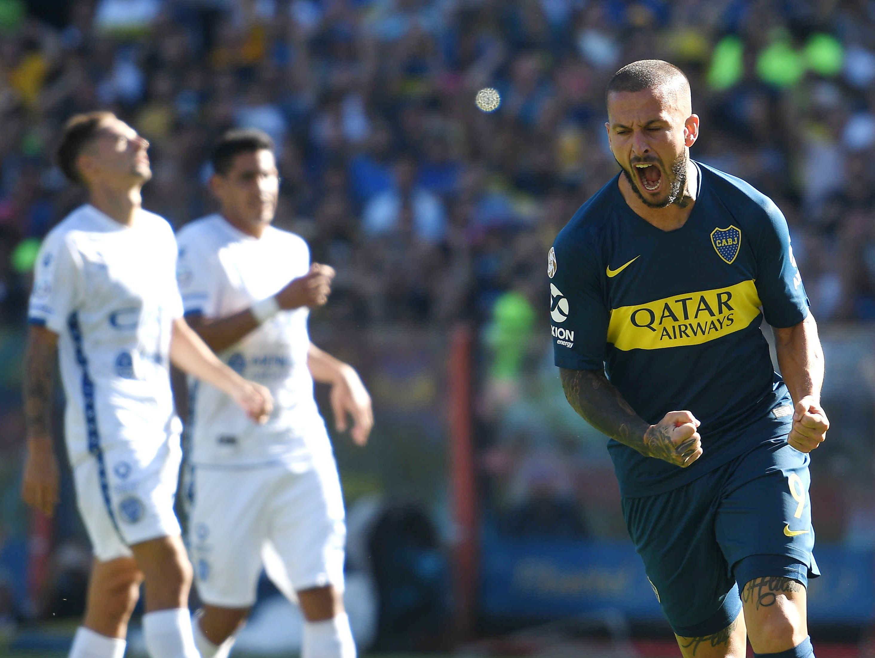 Darío Benedetto, de penal, marcó el primer gol y Mauro Zárate, de tiro libre, anotó el segundo, en una Bombonera colmada con una tarde plena de sol que dejó lugar a la queja de los visitantes por un gol mal anulado al delantero uruguayo Santiago García, en los minutos finales del pleito.
