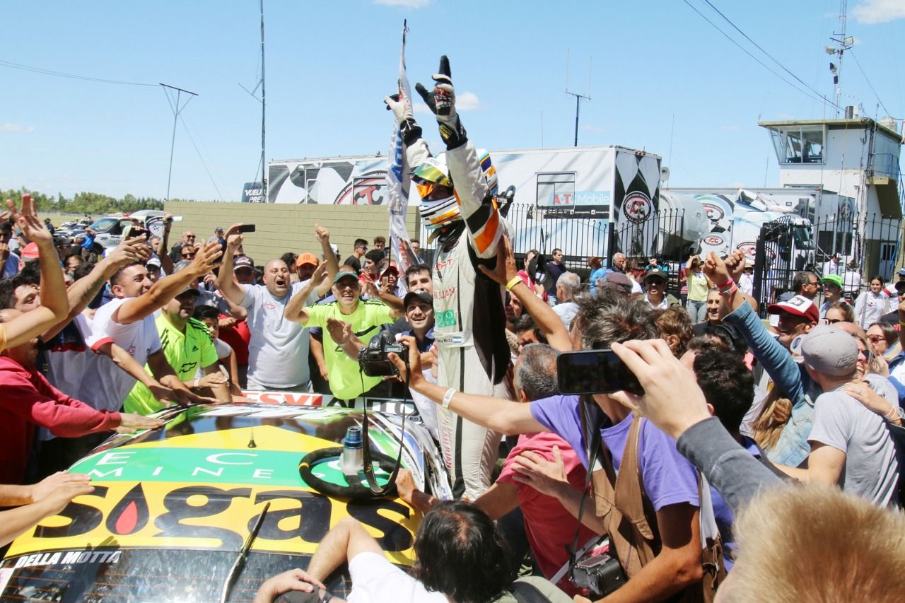 Locura en boxes. Della Motta celebró con su gente en La Plata. El sanjuanino fue el único que ganó 3 finales este año, hizo 6 podios y se impuso en 5 series.