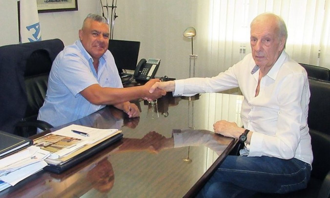Trato hecho. Claudio Tapia, presidente de la AFA, se estrecha la mano con el Director de Selecciones Nacionales desde el próximo mes, César Luis Menotti. El Flaco y una llegada sorpresiva.