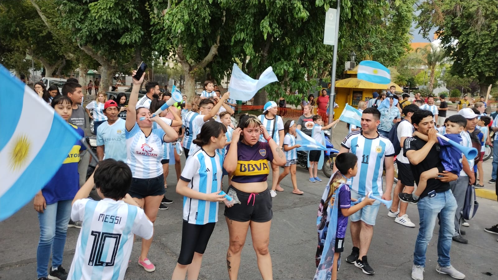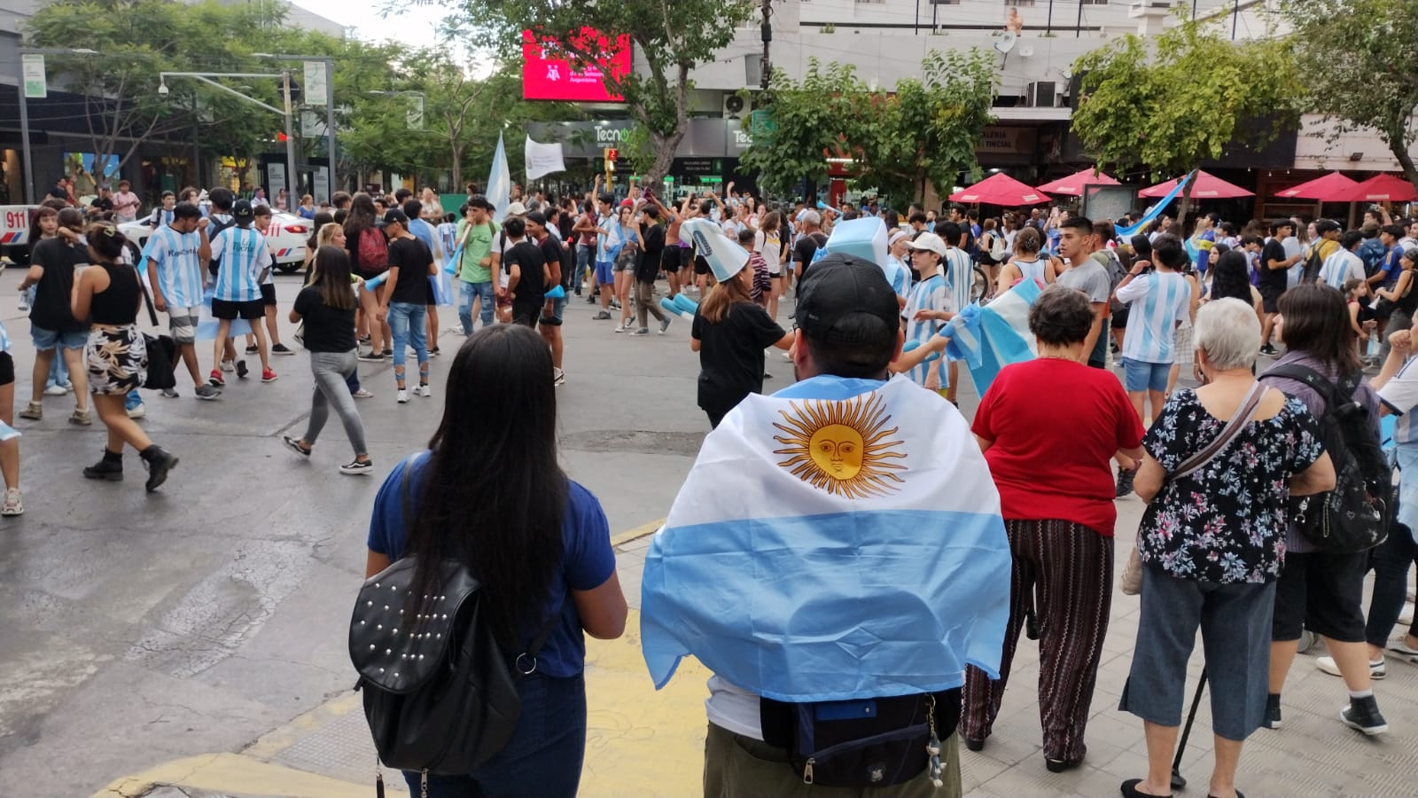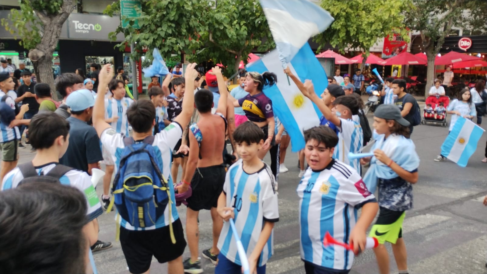 Ni bien el árbitro pitó el final, miles de sanjuaninos salieron a festejar, la mayoría a las plazas departamentales y, como de costumbre, la Plaza 25, escenario de tantas celebraciones.