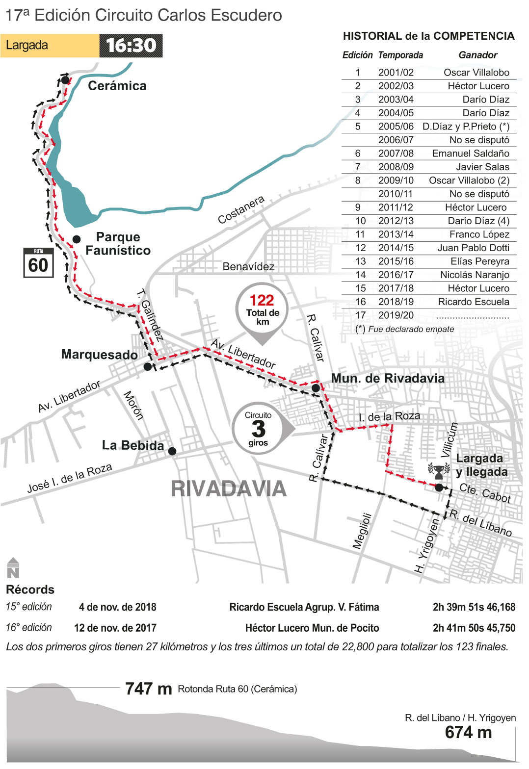 La prueba del Club Sportivo Sol Naciente de la Villa Flora reiterará por tercera vez un trazado que combina tramos veloces con otros más técnicos. Serán 127 kilómetros que alimentarán la expectativa de saber quién puede ganarla. De las escuadras continentales la única que se presentará, casi completa, es la perteneciente a la Municipalidad de Pocito, porque SEP estará con una formación alternativa, la Agrupación Virgen de Fátima liberó a sus hombres para que refuercen formaciones patagónicas en la Vuelta al Valle (ver aparte), Puertas de Cuyo se fue con todos sus efectivos a Río Negro y la Municipalidad de Rawson prestó a su embalador más representativo, Kevin Castro, a un equipo sureño.