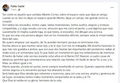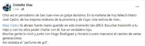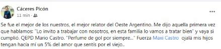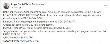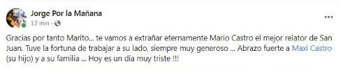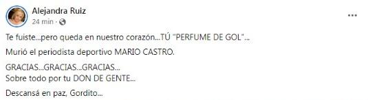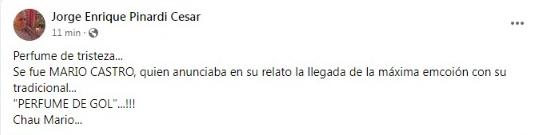 A los 65 años, murió este viernes 21 de octubre el reconocido relator deportivo, Mario Castro. Colegas y amigos lo despiden en las redes sociales.