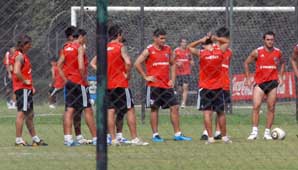 Los jugadores tuvieron una reunión grupal en el centro de una de las canchas del predio de Ezeiza previo a la primera práctica luego del traspié de anoche ante Newell’s.