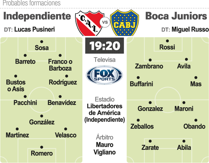En Independiente, el panorama no es mucho mejor. La derrota ante Lanús (3-1) en Avellaneda del jueves último que supuso la eliminación en los cuartos de final de la Sudamericana desnudó varias falencias en el funcionamiento del equipo, y el entrenador Lucas Pusineri es consciente que el clásico ante Boca representa una buena ocasión para recuperarse al menos en el torneo local, donde no puede permitirse otro resbalón tras haber perdido con Huracán (3-2) en la fecha pasada.