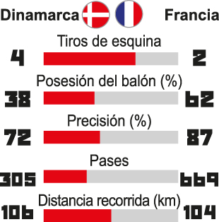 Iguales. A los dos les servía el empate y así se dio. A Francia para quedarse con el liderazgo del grupo C, y a Dinamarca para asegurarse la cuarta clasificación de su historia para octavos de final.
