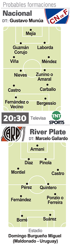 River, que acaba de finalizar la pretemporada en San Martín de Los Andes, jugará hoy un exigente amistoso ante Nacional de Montevideo, actual campeón uruguayo, con la finalidad de encontrar la puesta a punto de cara a la reanudación de la Superliga del fútbol argentino. El partido se jugará desde las 20.30 en el estadio Domingo Burgueño Miguel, en Maldonado. Estará en juego la Copa Desafío Campeones de América y será televisado por TNT Sports. Para el entrenador Marcelo Gallardo la noche también será especial, ya que Nacional le hará un homenaje debido a que el "Muñeco" comenzó en el club "tricolor" su carrera como técnico.