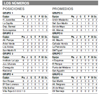 Calingasta, Iglesia, Albardón, Rawson, Ullum, Santa Lucía, Valle Fértil, 25 de Mayo y Capital se repartirán este sábado las emociones de los nueve partidos que le abrirán la puerta al final de la primera rueda de la Fase Clasificatoria de la Copa de Campeones 2020-Copa DIARIO DE CUYO-San Juan Gobierno. Quedarán luego las tres fechas que cerrarán la etapa de la clasificación, donde los dos primeros avanzarán la Fase Final del certamen. Por el Grupo 1, uno de los líderes como Atlético La Capilla recibirá en su cancha a Juvenil Sorocayense. En el Grupo 2, en Rodeo, Sportivo San Martín será local de Árbol Verde de Jáchal. En el Grupo 3, en Albardón, el puntero Instituto La Laja jugará ante Nacional de Santa Lucía. El Grupo 4 irá completo este sábado con Villa Rojas-San Roque de Albardón y Villa Ibañez de Ullum con Barrio San Lorenzo. En el Grupo 5, en Santa Lucía, Sol de Mayo jugará con Atlético Alianza. En el Grupo 7, en Valle Fértil, San Agustín recibirá a El Parque de Caucete, mientras que por el Grupo 8, toda la actividad se desarrollará este sábado con los partidos entre Sportivo 25 de Mayo-Unión Vecinal Bermejo en Santa Rosa y Atlético San Martín con Atlético General Belgrano de Sarmiento en el estadio Hilario Sánchez de Concepción. Quedarán para el domingo los otros siete partidos de cada uno de los grupos, de acuerdo a la siguiente programación: Grupo 1, Horizontes Juveniles-Deportivo Barreal; Grupo 2, Pampa-Los Andes; Grupo 3 Cieneguita-Juventud Ullunera; Grupo 5 Unión Medanito-Defensores de San Martín; Grupo 6 Maurín-La Patroncita y Tupelí-Cañada Honda; Grupo 7, 4 Esquinas-Punta del Médano.