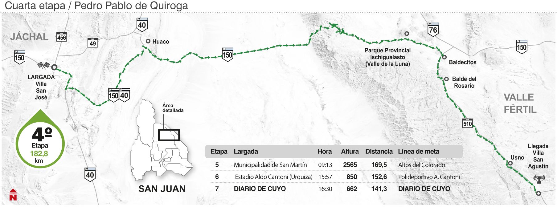 El recorrido de la etapa 4, que irá desde Jáchal hasta Valle Fértil