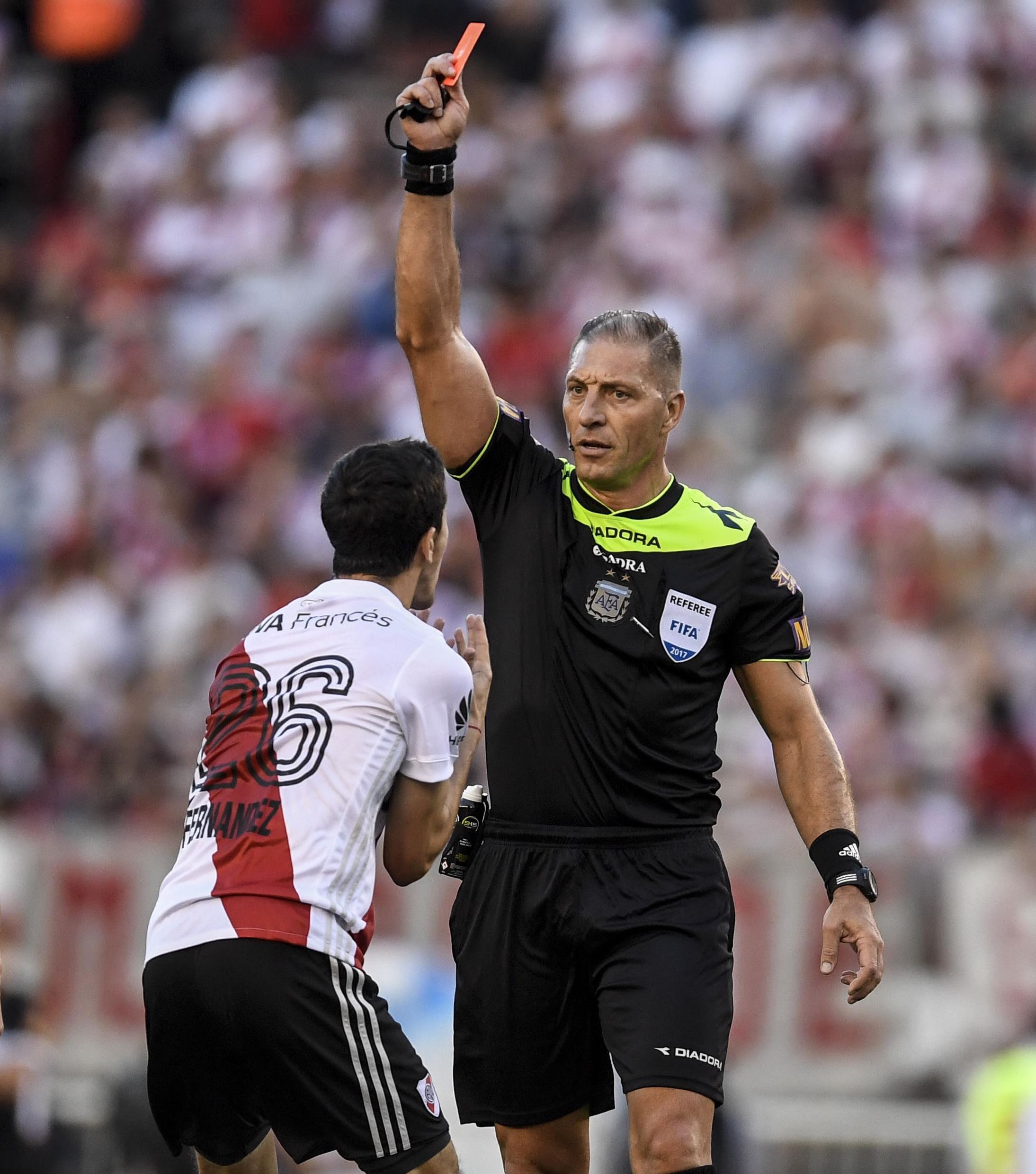 En el segundo tiempo, Pitana se apresuró y expulsó a Edwin Cardona por un supuesto codazo a Enzo Pérez. En dicha jugada, el misionero debió apoyarse en el asistente Juan Pablo Belatti, quien tenía la visión más directa pero decidió expulsar al colombiano. Precisamente Belatti fue protagonista sobre el final, ya que en una jugada por derecha que terminó en gol de Ignacio Scocco (luego anulado) se sancionó tiro de esquina cuando la pelota no había salido en su totalidad.