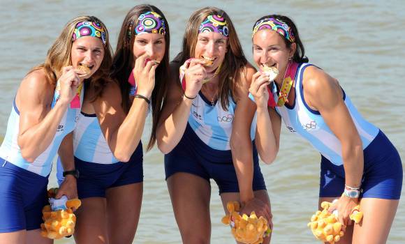 Por la mañana, María Laura Abalo, María Gabriela Best, Clara Rohner y Milka Kraljev ganaron la sexta medalla de oro argentina, al imponerse en la prueba de cuádruple par femenino.