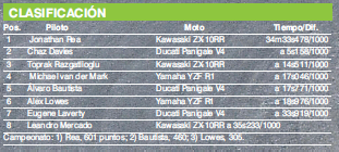 El español, con problemas en el tren delantero, fue superado después por Chaz Davies, quien había quedado tercero. Bautista no pudo sostener esa posición tampoco pues fue superado por Razgatlioglu.