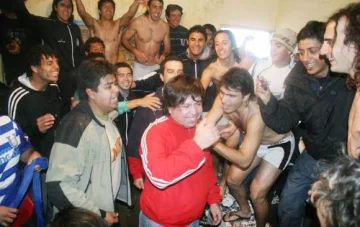 El rincón de los jugadores. Ese lugar íntimo de los festejos y amarguras del plantel. Jorge Steiner fue el primero en llegar para que no le sacaran la camiseta. Luego entró Ernesto Fullana, enojado, porque no quiso dar su indumentaria. Antes que llegara el resto, ya se sumaba el gobernador José Luis Gioja, uno simpatizante más del equipo y entró diciendo: "Bien muchachos, aguante Unión".