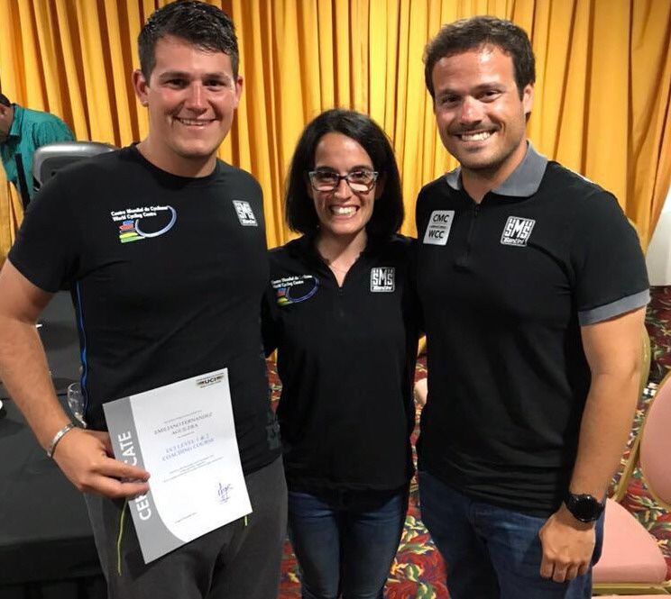 Emiliano comparte la foto con Alejandro y Esperanza, instructores de la UCI que hace poco más de un año dictaron el curso de entrenador de nivel 1 y 2, donde el sanjuanino sorprendió por su capacidad para transmitir los conceptos a los ciclistas con los que le tocó trabajar, especialmente a una joven jamaiquina con la que tenían el inconveniente del idioma y, sin embargo, logró que su corredora cumpliese con lo previsto. "Me encantaría hacer el curso en Suiza (en L"Aigle la UCI tiene su Centro Mundial) porque eso me habilitaría a dirigir equipos profesionales World Tour, me propuse retomar las clases de inglés", amplió.