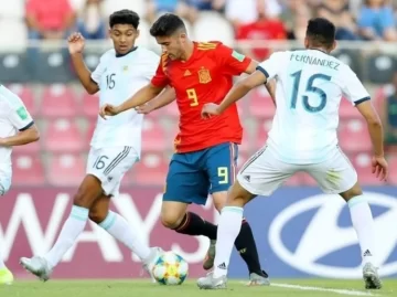 Sin embargo, los conducidos por Pablo Aimar perdieron en la pelota con el paso de los minutos, España comenzó a llegar y en el cierre de la etapa inicial el árbitro Christopher Beath cobró un polémico penal, que finalmente no fue concedido porque el VAR observó una posición adelantada en el arranque de la jugada.