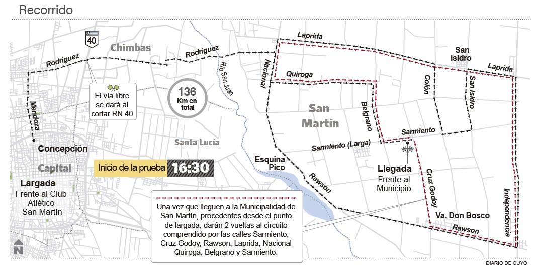 La carrera que organiza la subcomisión de ciclismo del Club Atlético San Martín tendrá un 90 por ciento de su recorrido en el Departamento homónimo a la entidad deportiva, pero transitará por Capital y Chimbas hasta entrar al terreno sanmartiniano, propiamente dicho.