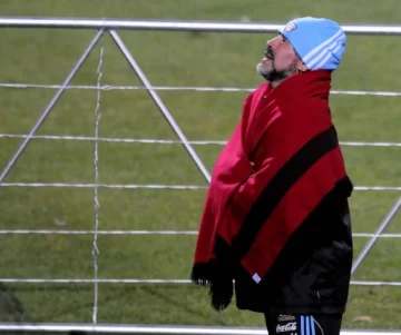 Cuando terminó de patearles a los arqueros, mientras Héctor Enrique y Alejandro Mancuso jugaban un fútbol-tenis, Maradona se acercó a la tribuna y unos hinchas salteños le regalaron un poncho bordó.