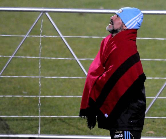 Diego Maradona, feliz por la actuación del seleccionado argentino, volvió a brindar un verdadero show, demostrándole a los arqueros del equipo que su pegada sigue vigente y al final se vistió con un poncho bordó que le regalaron unos hinchas. "Bien Bolatti, bien "Bruja", bien todos ehhh", fue el grito de Maradona cuando dio por finalizada la práctica de fútbol de los suplentes.