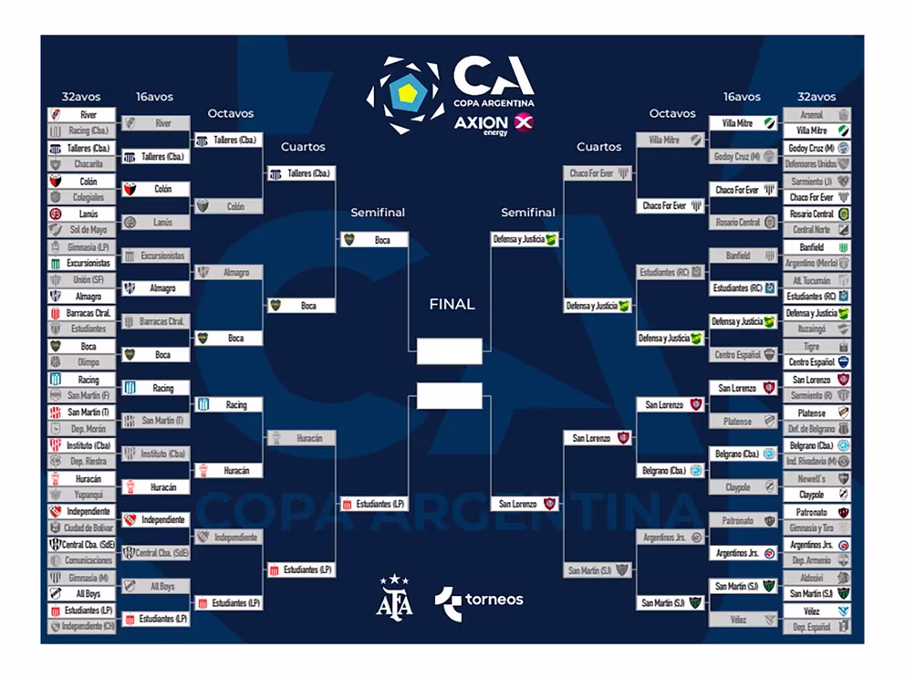 El otro cruce es ya había quedado definido con el duelo entre San Lorenzo de Almagro y Defensa y Justicia. El Ciclón se impuso en los cuartos de final ante San Martín de San Juan, mientras que el Halcón hizo lo propio en los penales ante Chaco For Ever. De esta manera, a la espera de la confirmación de los días, horarios y sedes, lo que está claro es que los encuentros se disputarán en la próxima fecha FIFA, que se jugará entre el 13 y el 21 de noviembre.