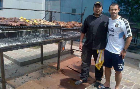 Así lo retrató el volante Javier Mascherano a través de su cuenta de Twitter (@mascherano) donde escribió: “Buenos días. Hoy asadito en el predio de Ezeiza. Acá va una foto con el mejor cocinero de todos. Gracias Dieguito!!!”.