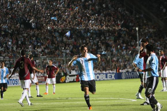 Pero antes de meterse más en ese juego, cuando el partido ya estaba 1-1, cambió ira por alegría. En un veloz ataque que quedó desacomodada la defensa rival, recibió una asistencia perfecta de Maxi Moralez en el área y no perdonó ante el arquero rival. Tenía programado un festejo, porque lo buscó a quien le entregó el gol y practicaron en el área venezolana un bailecito.