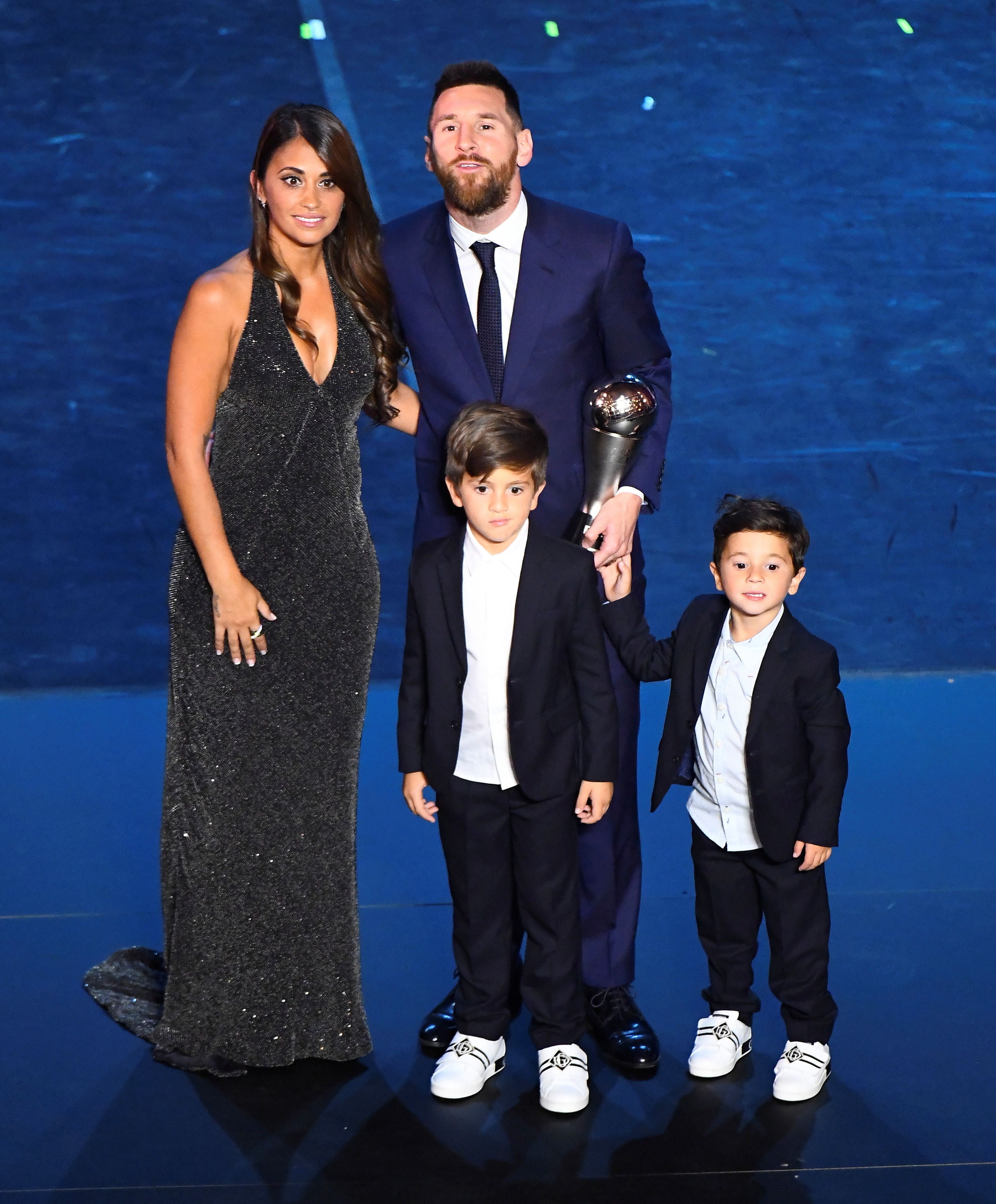 A diferencia de otras premiaciones, el capitán argentino estuvo acompañado no sólo por su esposa Antonella Roccuzzo, sino por dos de sus hijos, Thiago y Mateo. Ciro vio todo por televisión.