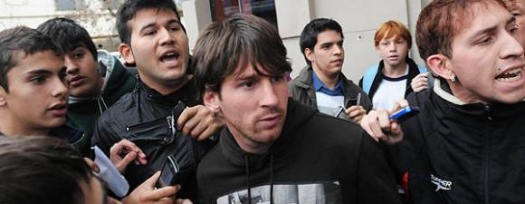 Rosario, 2 de junio.- Esta tarde en pleno centro de Rosario, el mejor jugador del mundo, Lionel Messi, estaba disfrutando de un almuerzo. En eso, entró un joven reconocido hincha del “Canalla” y lo agredió.