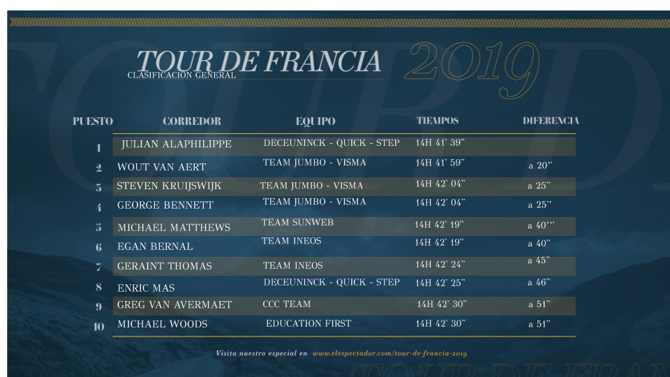 Detrás de los fugados rodó el pelotón, en el que se encontraba el líder, el francés Julian Alaphilippe (Deceuninck-Quick Step), y, entre otros, los colombianos Egan Bernal (Ineos), Rigoberto Urán (Education First) y Nairo Quintana (Movistar). Había que pasar por dos puertos de montaña de cuarta categoría. Etapa, en su mayoría, llana.