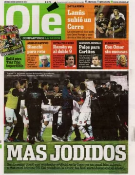 Hasta Olé le dedicó su portada al sanjuanino. “Mas jodidos” tituló el diario especializado en deportes a la hora de analizar el encuentro que terminó en escándalo cuando los jugadores fueron a reprocharle la falta que terminó en penal.