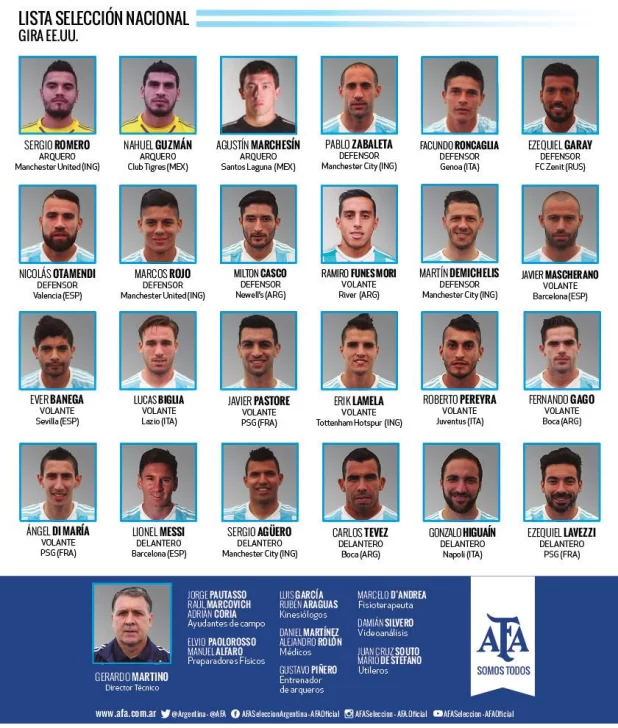 Gerardo Martino confirmó hoy que serán 24 los jugadores que participarán de la gira por Estados Unidos, en lo que será el reencuentro del plantel con el cuerpo técnico luego de la obtención del subcampeonato en la Copa América de Chile.