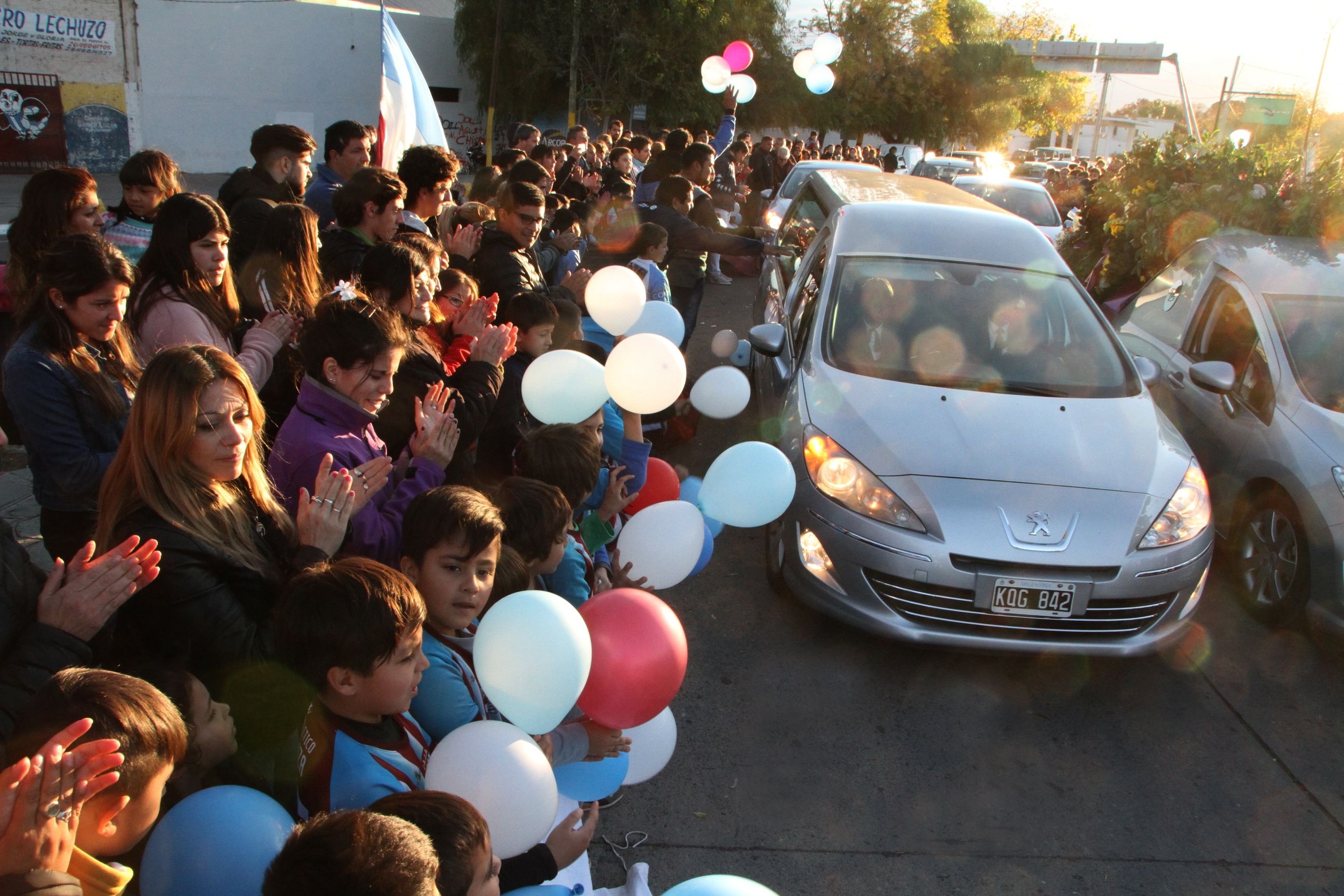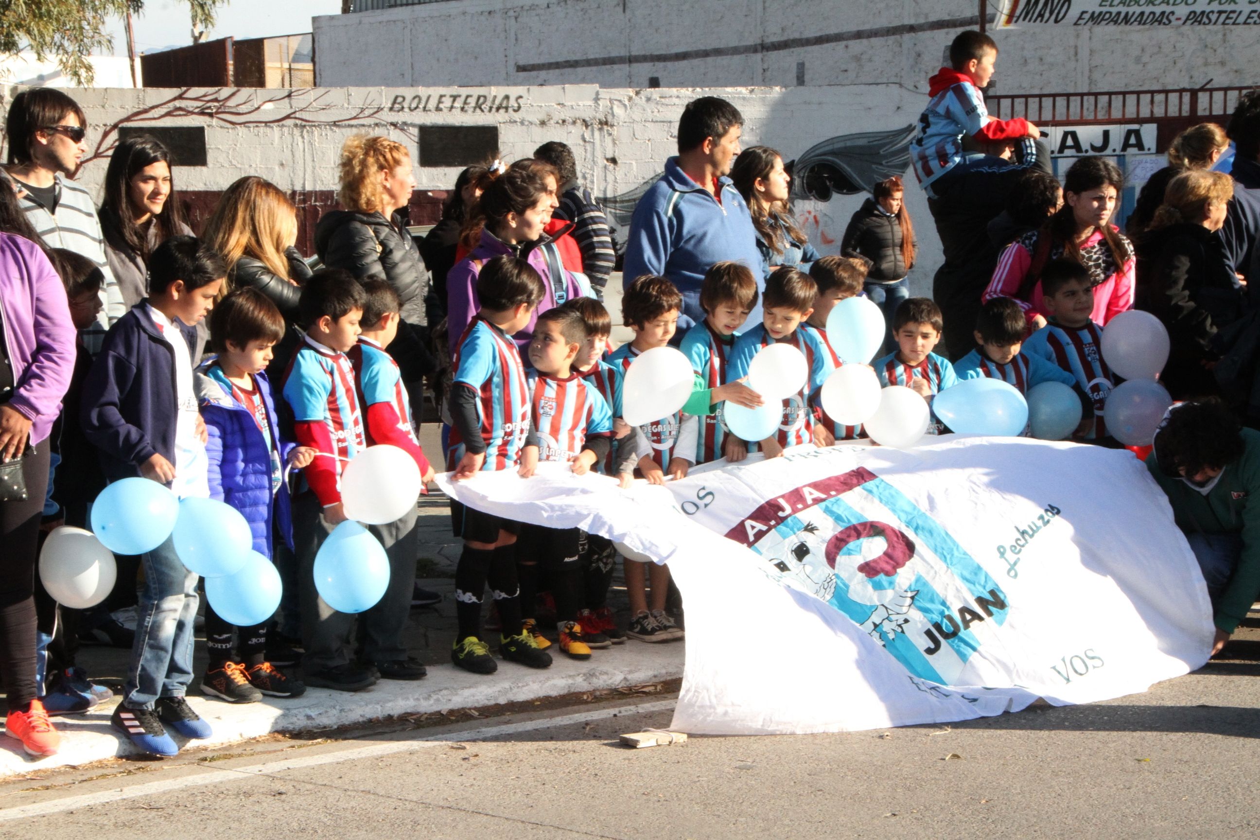 Los chicos asistieron a la puerta del club santaluceño con las camisetas puestas y desplegaron globos celestes y blancos en momentos que fue por demás dolorosos y emotivos.