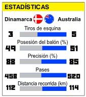 Australia sobrevivió ayer en el Mundial de Rusia-2018 con un empate 1-1 ante Dinamarca, en el partido de la segunda jornada del Grupo C en el que los de Oceanía evitaron la derrota ante los europeos con un penal decretado mediante el VAR.