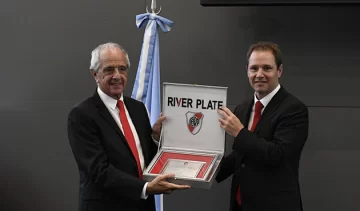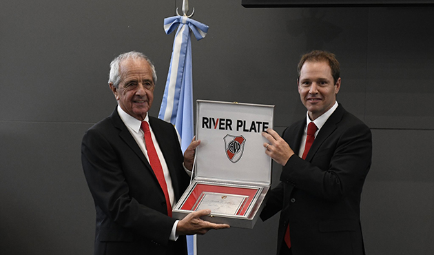 Brito, el segundo presidente de River más joven de su historia, recibió un abrazo afectuoso de D"Onofrio cuando recibió el diploma que lo certifica como nuevo titular del club.