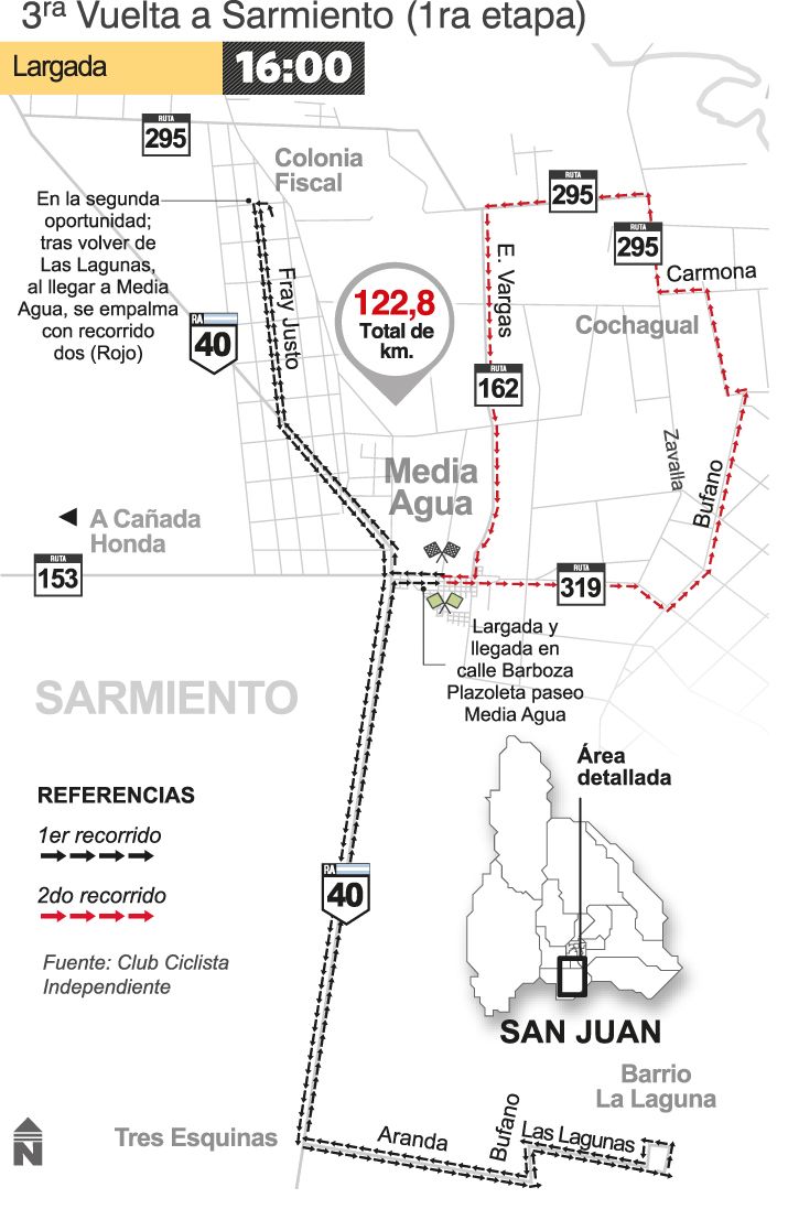 La primera, que se corre hoy desde las 16, será la única de las tres etapas que sufrirá modificaciones con respecto a la edición del año pasado. Con ella comienza un fin de semana donde "el planeta ciclismo" se traslada a Sarmiento. Será la tercera edición de una carrera que nació en la idea que le propuso Víctor Balmaceda, presidente del Club Independiente, al intendente Mario Martín, quien "compró" la sugerencia viendo que era una valiosa herramienta de mostrar las bondades de su pago chico.
