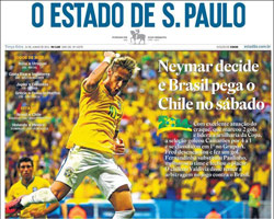 ‘En la clasificación lograda ayer Brasil contó con la genialidad de Neymar. Hizo regates de aquellos que dejan al adversario sin rumbo. Comandó al equipo, gritó, ayudó en la defensa y, en el momento en que las fallas amenazaban con desilusionar a los 70.000 asistentes al estadio de Brasilia, surgió veloz e implacable‘, afirma el periódico paulista.