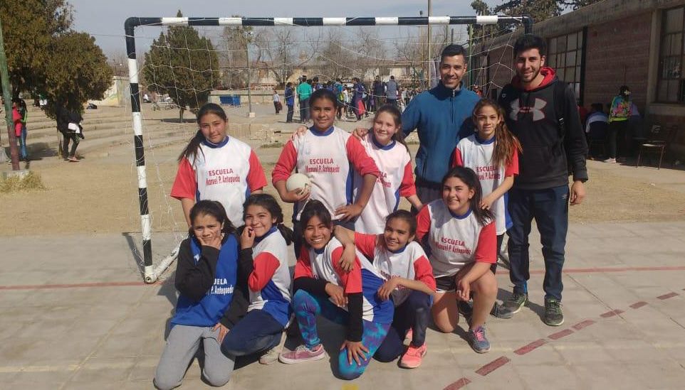 Fue el turno del hándbol. Entre los equipos orgullosos figuran la Esc. "Manuel P. Antequeda", que logró el título en la categoría Sub-12 de mujeres, con estas integrantes: Aitana Álvarez, Ángela Cortéz, Ana Ontiveros, Emilce Olivares, Karen Ibazeta, Zoe Castro, Lorena Agüero, Celeste Güaquinchay, Giuliana Molina y Valentina Nievas.