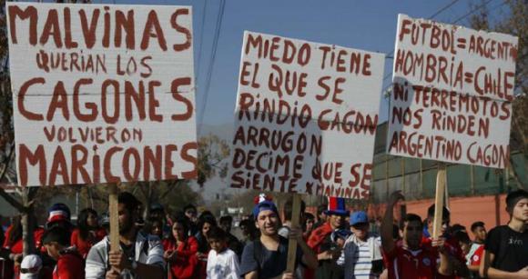 Chile, 3 de junio.- En la previa de la final, un banderazo de hinchas chilenos despertó la polémica dado que un grupo de fanáticos recordó el conflicto bélico entre Argentina e Inglaterra por las Islas Malvinas con pancartas que humillaban el recuerdo de aquellos que perdieron su vida en la guerra.