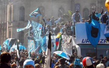 Asimismo, otra multitud calculada en 10.000 personas, aguardó con banderas y globos la llegada del plantel en el centro de la ciudad, de manera especial frente al Patio Olmos, donde se realizó el festejo central y todo fue delirio por el nuevo ascenso a Primera División.