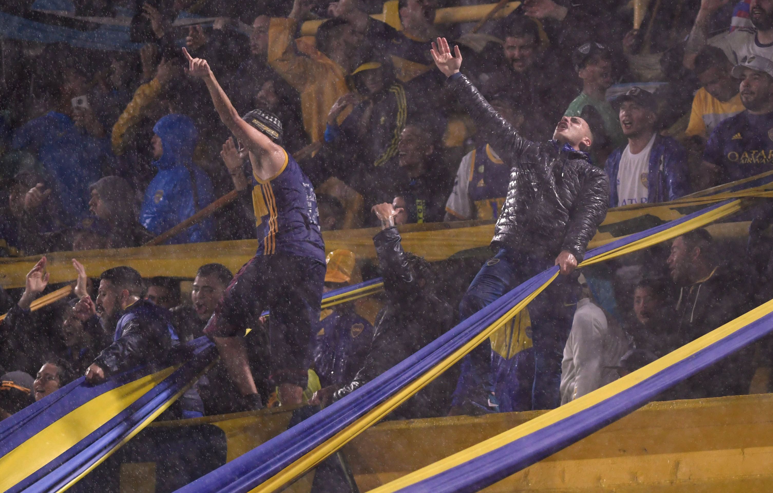 La fuerte tormenta que cayó ayer se sintió en la Bombonera. Cerca de las 16, la cancha estaba cubierta parcialmente de agua, con sectores en los que la pelota no hubiese rodado, lo que exige el reglamento para jugar. Sin embargo, ya a las 17 había bajado la intensidad de la lluvia (5 milímetros una hora antes), por lo que ya se veía el césped.