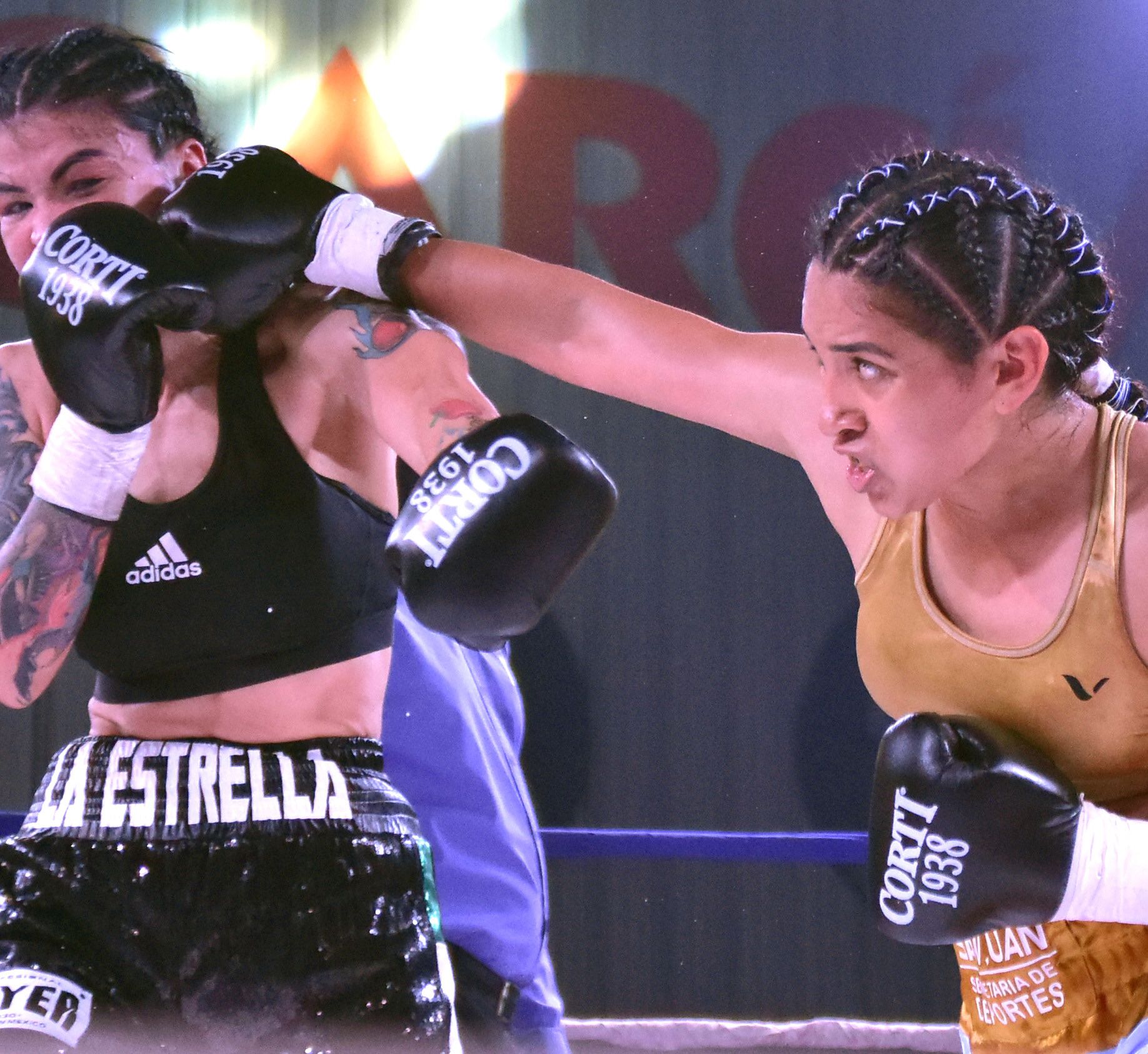 La sanjuanina, a quien por una lesión se le frustró una defensa de su título en Estados Unidos, fue superior en los dos primeros asaltos, el combate llegó hasta allí, porque Ruíz acusó una dolencia en su hombro y no salió a combatir al tercer round del combate que estaba previsto a la distancia de seis asaltos.