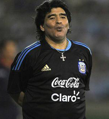 El Pelusa fue protagonista en las primeras dos visitas de Argentina a San Juan. En 1982, en su rol de futbolista, fue protagonista excluyente con cuatro tantos ante el combinado de "Cuyo". En la previa de "Sudáfrica 2010", en cancha de San Martín y ya como DT, sus dirigidos superaron 3-2 a Costa Rica.